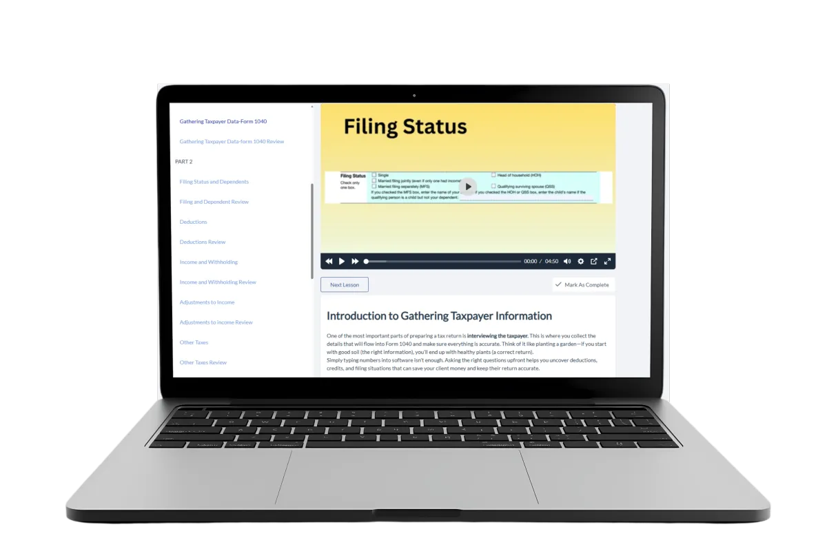 Our unique self paced course teaches you step-by-step how to understand taxes, prepare returns correctly, and confidently work with real clients — without feeling overwhelmed.